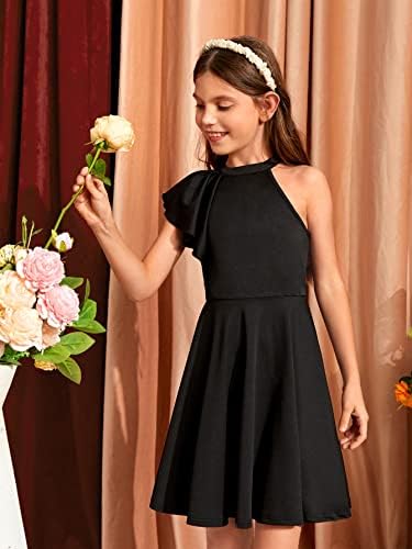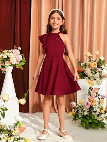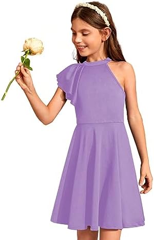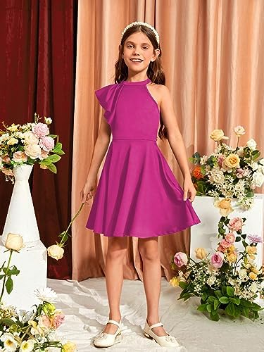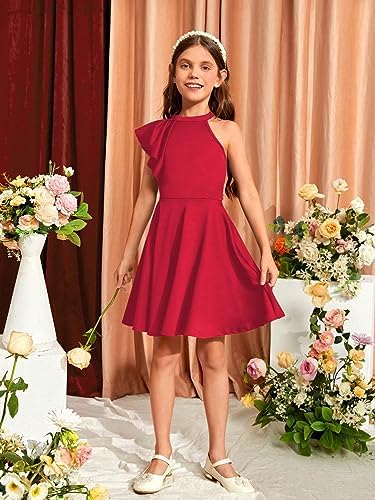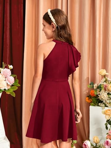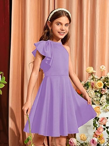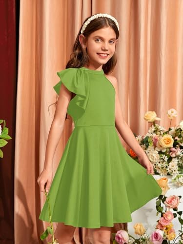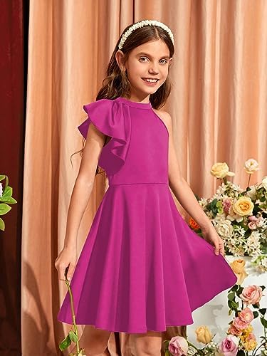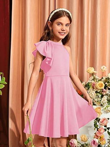 WDIRARA Girl's A Line Flowy Ruffle Sleeveless Asymmetrical Fancy Party Mini Dress