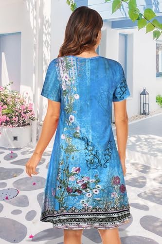 Womens Summer Dresses Beach Casual Loose Tshirt Floral Short Sleeve Flowy Pockets Sundresses