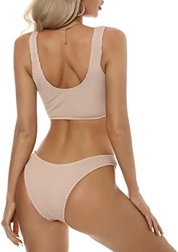 CUPSHE Bikini Set for Women Two Piece Swimsuits Cut Out High Waisted Scoop Neck V Cut Bottom